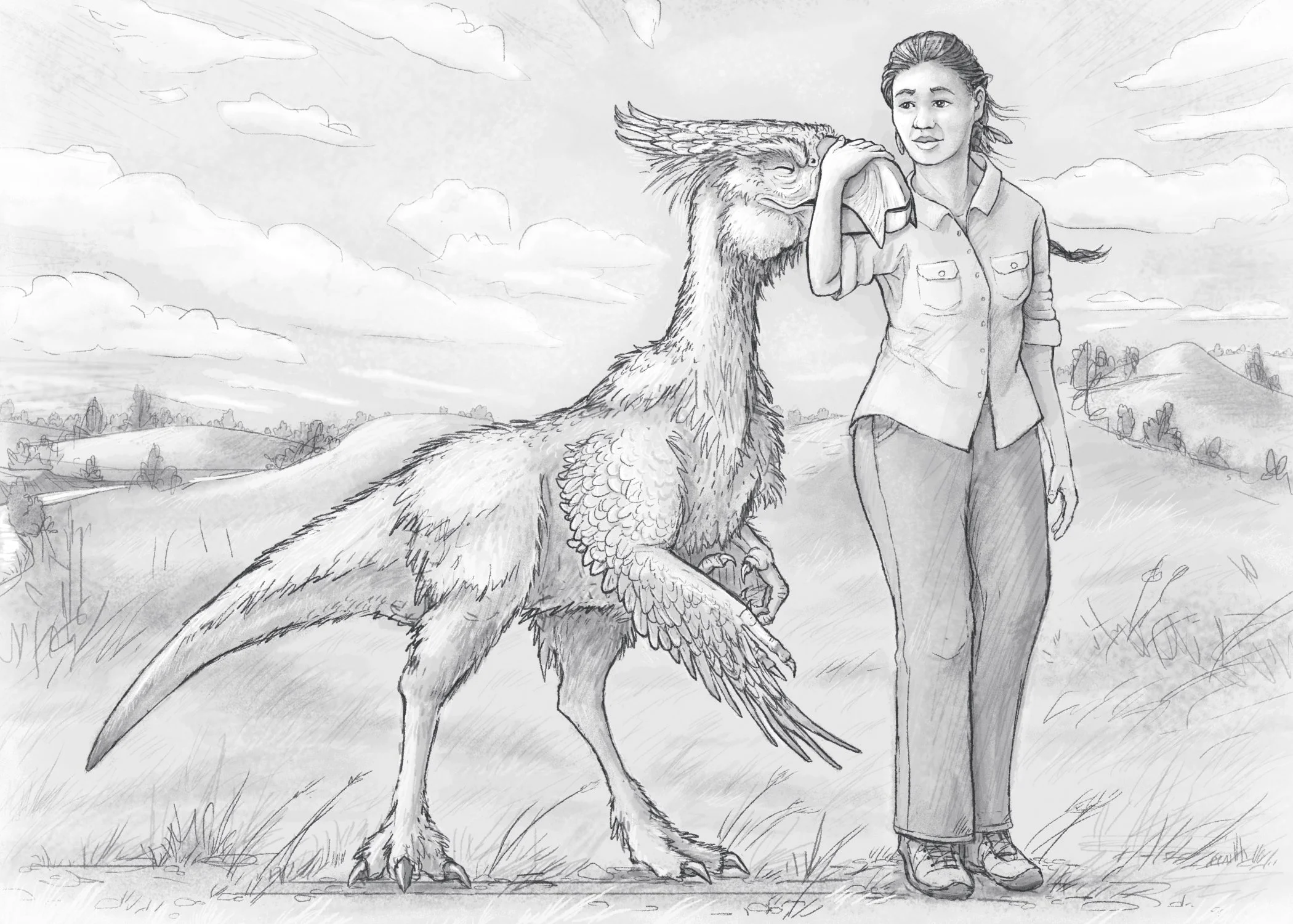 The Pteroraptor is an extant species of dinosaur related to the Oviraptor family, which survived the K-Pg extinction and has persisted in hiding from humans on a group of islands in the remote Pacific Ocean.